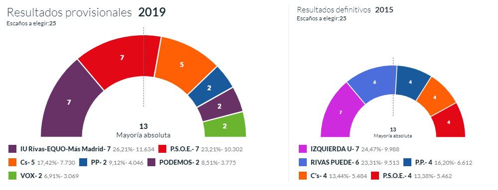 Las formaciones de izquierdas también buscan ponerse de acuerdo en otros municipios como el propio Rivas -único bastión de IU en la Comunidad-, donde Podemos (Del Cura se coaligó con Equo y Más Madrid y Podemos se presentó por separado) se ha mostrado dispuesto a "apoyar la lista más votada" (IU y PSOE obtuvieron 7 escaños cada uno) para evitar posibles coaliciones de los socialistas con Ciudadanos. IU-Equo-Más Madrid y PSOE, por su parte, ya han llegado a un preacuerdo programático que terminará de perfilarse en las próximas horas. Además, los de Del Cura tienen previsto proponer a los socialistas un gobierno paritario, compartido al 50 por ciento, que consideran "fácil" de aceptar por ambas partes.