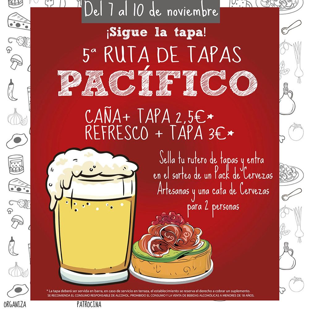 Organizado por Un Buen día en Madrid y Cerveza más Tapas por Madrid, esta ruta gastronómica nace con el objetivo de promover y dinamizar la hostelería del distrito, poniendo en valor sus bares y restaurantes. La Ruta de Tapas Pacífico comenzó en el año 2015, y desde entonces ha ido sumando tanto asistentes como bares y restaurantes, con cerca de 85.00 tapas vendidas.