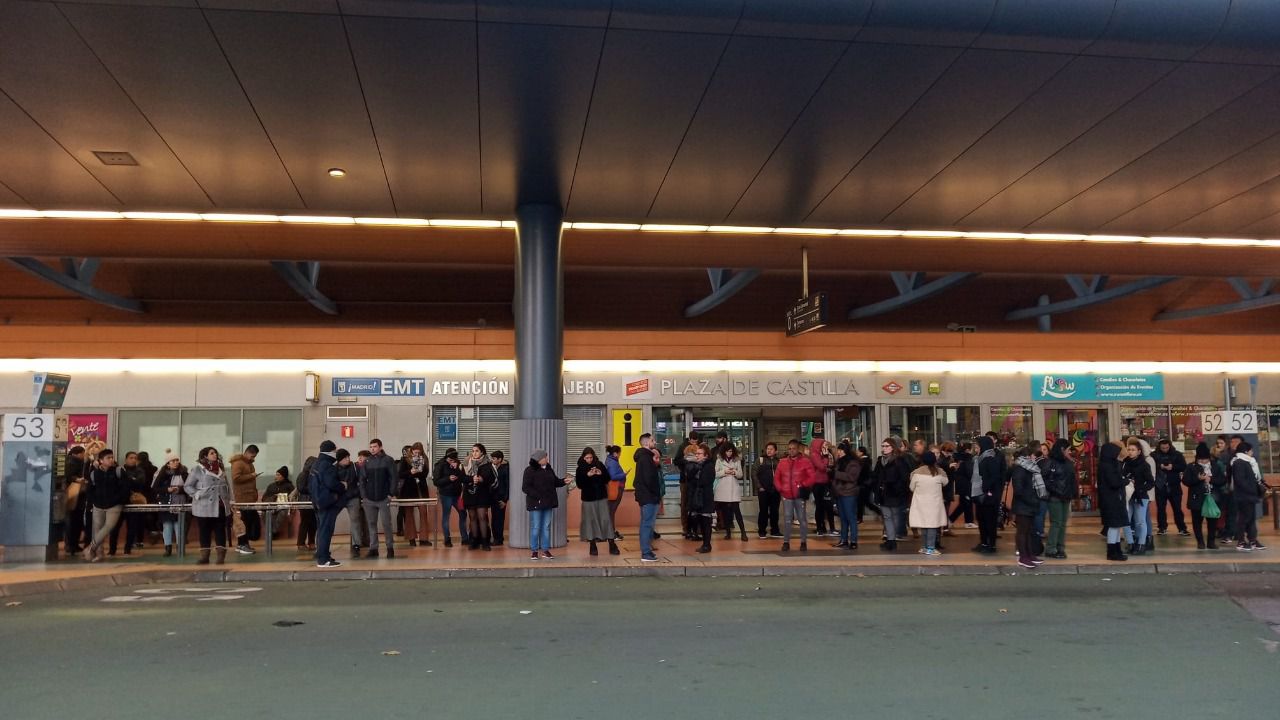 Caras largas, rostros serios y algún que otro comentario -nada bueno- sobre la tardanza de los autobuses. Muchos viajeros y usuarios de la EMT, a pesar del madrugón para evitar llegar tarde a sus destinos, han esperado más de media hora en algunas de las líneas de autobús. Las ubicadas en Plaza Castilla han mostrado, a primera hora de la mañana, largas colas de viajeros.