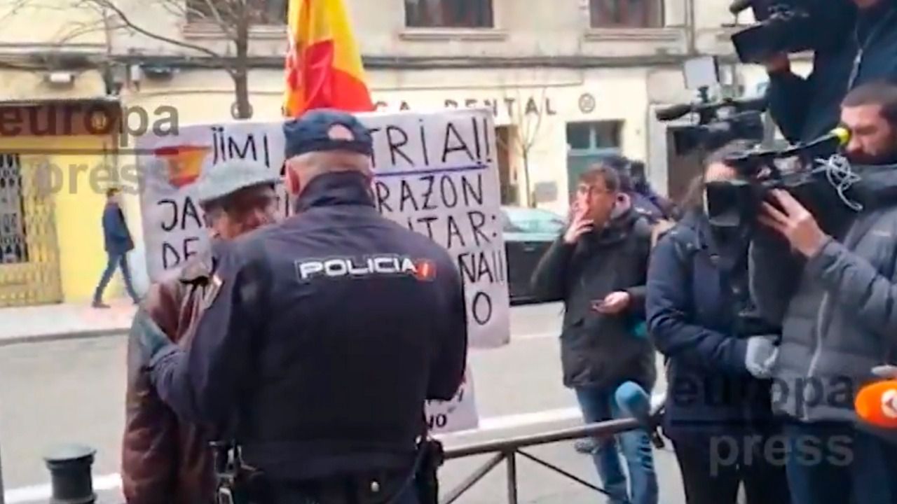 Polémica por la actuación policial contra un manifestante que protestaba en la calle Ferraz, frente a la sede del PSOE, al grito de 'Viva España'. La Policía ha reducido y se ha llevado por la fuerza al hombre que se encontraba apostado en una "zona de seguridad", debido a la presencia del líder socialista, Pedro Sánchez en una reunión de la Ejecutiva en la sede madrileña.