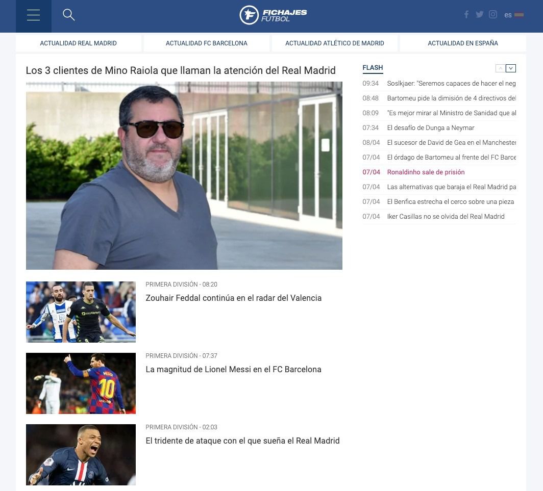 La pandemia del coronavirus ha impuesto un parón obligado en las competiciones futbolísticas de todo el mundo. Nadie sabe cuándo se reanudarán los partidos de fútbol y qué pasará con competiciones como la Liga española. Sin embargo, lo que es seguro es que, en algún momento, el fútbol volverá y los seguidores a los campos. Y los rumores de nuevos fichajes para el próximo verano no han cesado con la crisis mundial. En los despachos se sigue trabajando de forma telemática para incorporar nuevos futbolistas de cara al curso que viene. La web de Fichajes refleja de forma fielmente todos estos movimientos y rumores del mercado, con especial atención a los principales equipos del mundo.