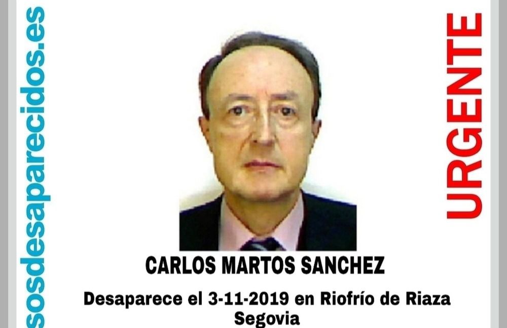 La Guardia Civil ha encontrado el cuerpo sin vida del madrileño Carlos Martos Sánchez, de 66 años y desaparecido el pasado 3 de noviembre en el entorno de la localidad de Riofrío de Riaza, en Segovia.