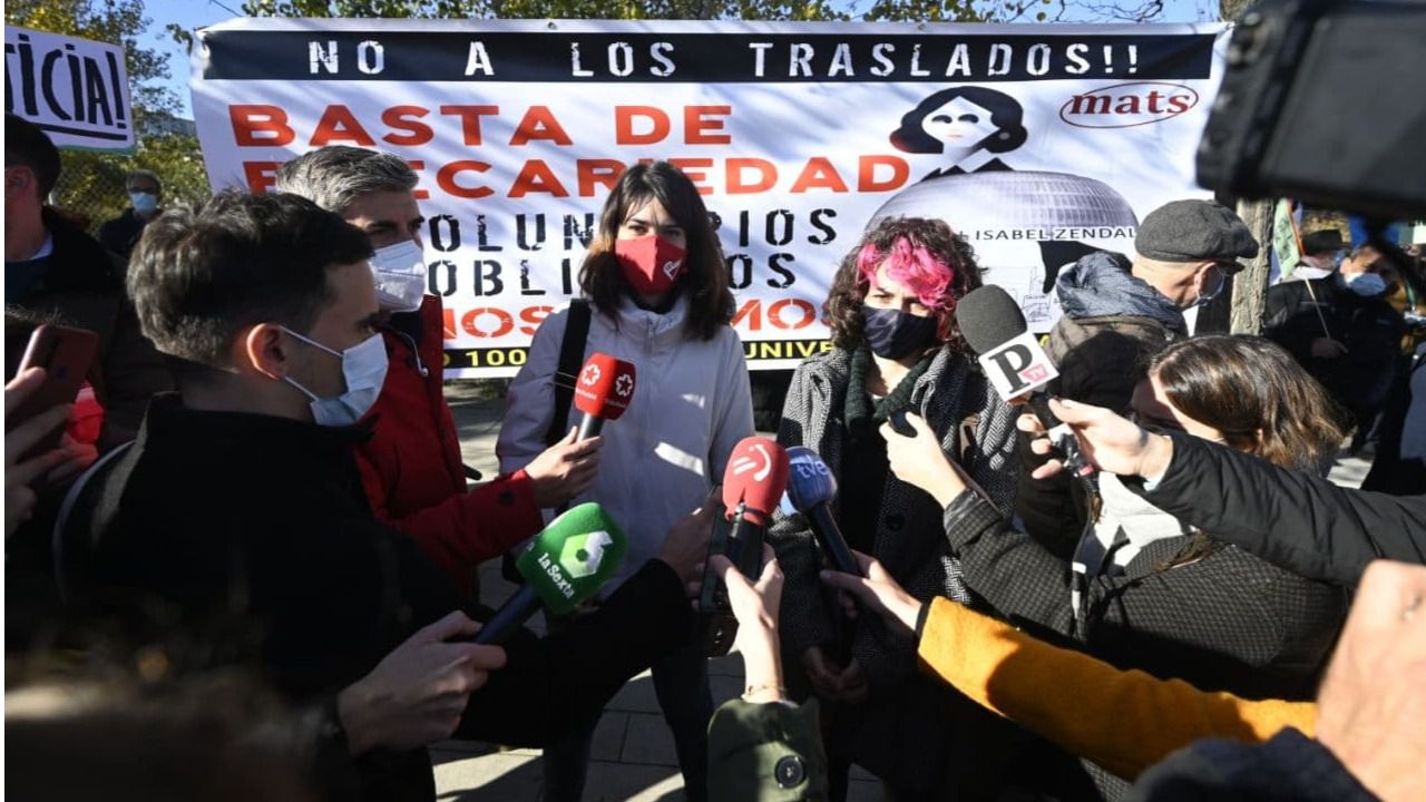La portavoz de Unidas Podemos-IU en la Asamblea de Madrid, Isabel Serra, se ha unido esta mañana a la concentración de sanitarios frente al Hospital Isabel Zendal el día de su inauguración oficial y ha criticado el "engaño y el sinsentido" que supone su creación.