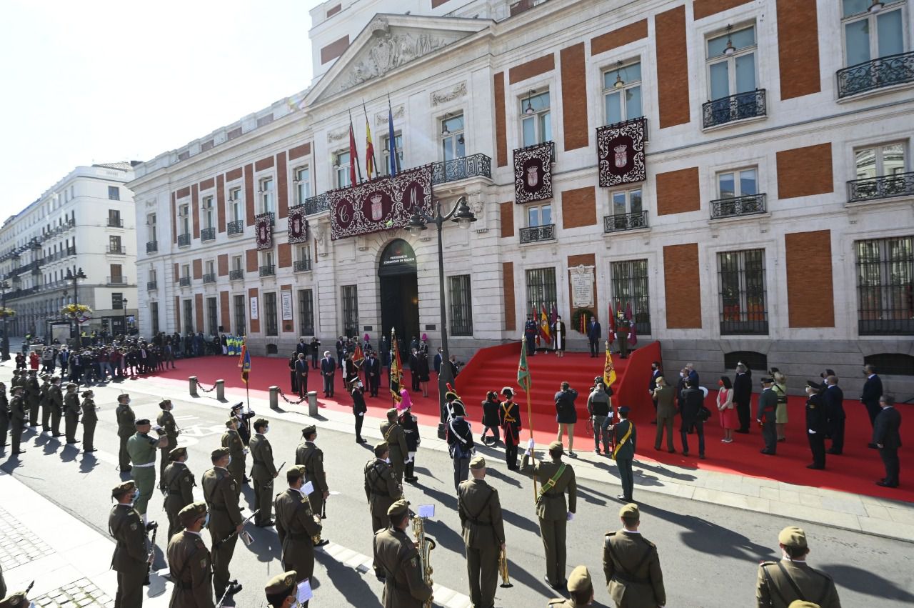 La Real Casa de Correos, sede del Gobierno regional, ha acogido este domingo la ceremonia de entrega de las Medallas y Condecoraciones de la Orden del Dos de Mayo con motivo del Día de la Comunidad de Madrid, al que han acudido autoridades, representantes de la sociedad civil, expresidentes regionales y candidatos de los distintos partidos a las elecciones a excepción de los de Unidas Podemos, Pablo Iglesias, y la de Más Madrid, Mónica García.