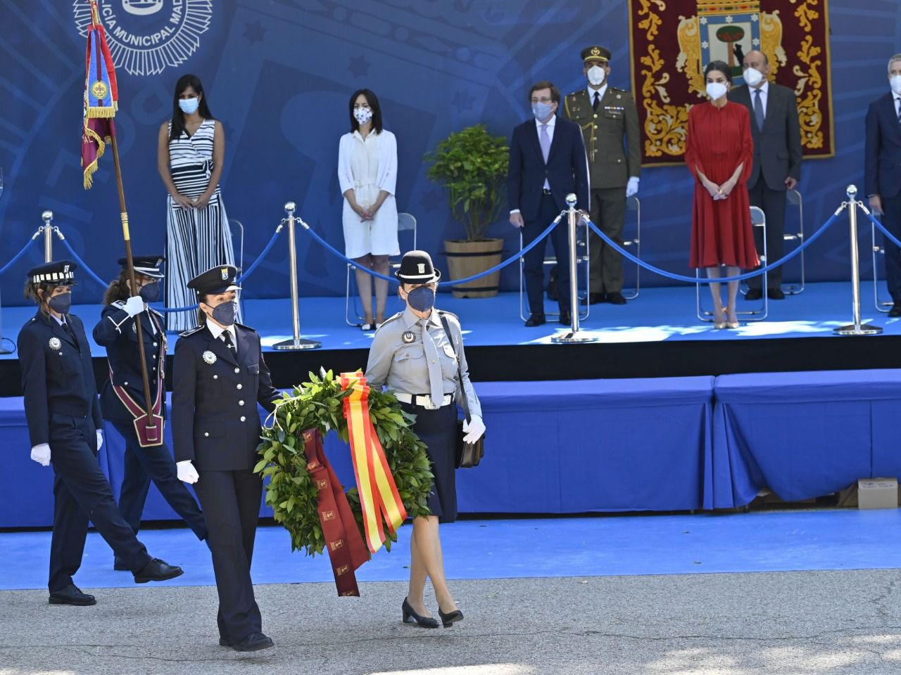 El acto ha contado con la presencia de numerosas autoridades y personalidades políticas. Han acompañado a la Reina Letiza en la tribuna presidencial el alcalde, José Luis Martínez-Almeida, el comisario general de la Policía Municipal, Teodoro Pérez, el ministro del Interior, Fernando Grande-Marlaska; la vicealcaldesa de la ciudad, Begoña Villacís; la delegada del gobierno en Madrid, Mercedes González; la delegada de Seguridad y Emergencias y portavoz municipal, Inmaculada Sanz; el director general del Cuerpo, Pablo Enrique Rodríguez; y la fiscal superior de Madrid, Almudena Lastra. También ha asistido parte de la Corporación municipal y representantes de los grupos de la oposición.