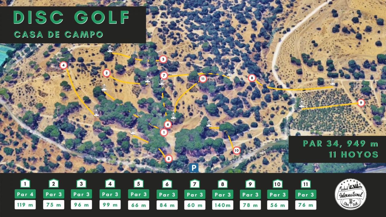 “En el Madrid International Disc Golf llevamos mucho tiempo intentando conseguir un campo. Prácticamente desde nuestra fundación. Hemos presentado varios proyectos al Ayuntamiento con diseños en Casa de Campo, aunque sabemos que es muy complicado por el tema de los permisos, en el parque de Polvoranca de Leganés, en el Emperatriz María de Austria, que es donde estamos jugando ahora…”, expone Miguel Espiau, miembro de la directiva del Madrid International Disc Golf.
