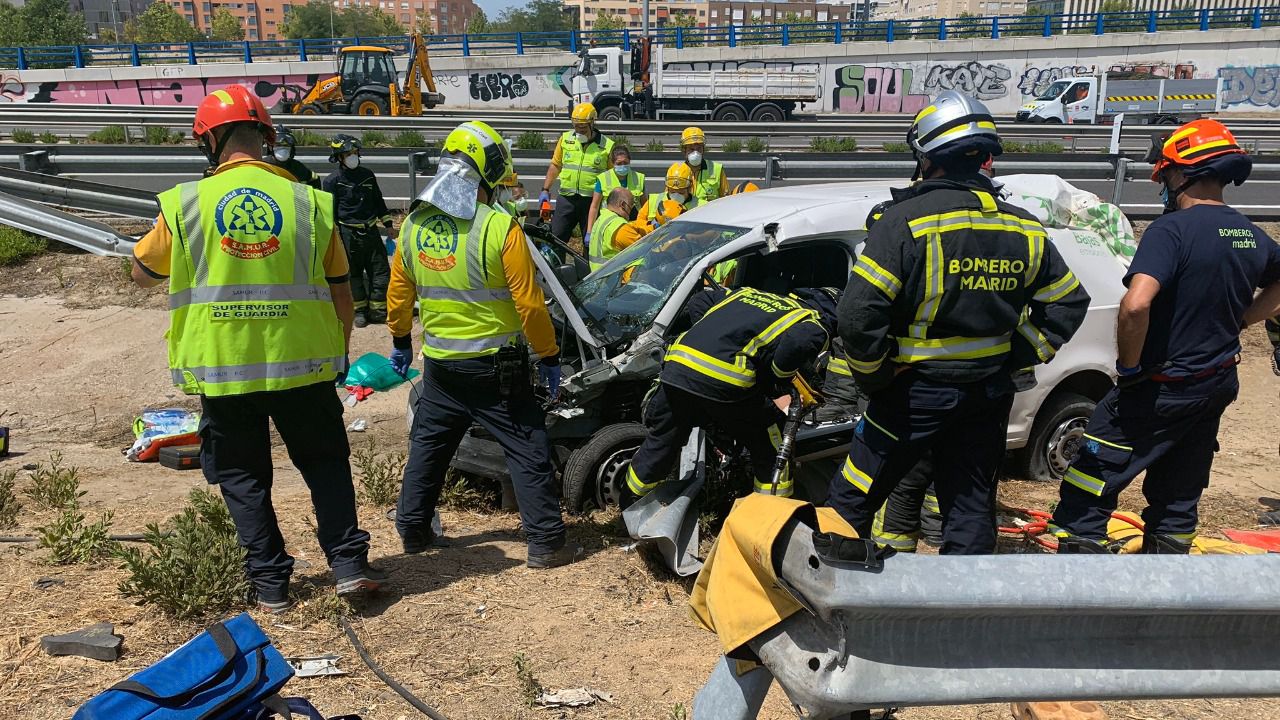 El afectado se ha quedado atrapado con el guardarraíl incrustado en el coche. Bomberos del Ayuntamiento de Madrid lo han rescatado tras realizar una intervención "laboriosa" y Samur-Protección Civil lo ha estabilizado, intubado y trasladado al Hospital de La Paz.