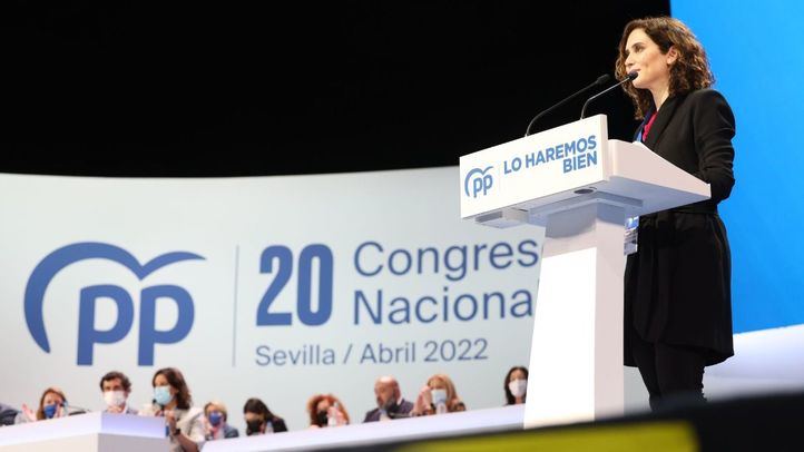 Durante diez minutos, la presidenta de la Comunidad de Madrid ha reivindicado los valores fundacionales del Partido Popular en su turno de intervención desde el Palacio de Congresos de Sevilla, donde se celebra el cónclave nacional de la formación, que culminará con la coronación de Alberto Núñez Feijóo como nuevo presidente. En su inicio, ningún saludo ha ido a parar a ningún miembro de la ejecutiva saliente. En cambio, los elogios han sido profusos hacia Juan Manuel Moreno Bonilla, presidente de Andalucía, a Núñez Feijóo, futuro líder, y, sobre todo, a José María Aznar, que ha recibido las palabras desde su casa en Madrid, ya que se encuentra contagiado de Covid.