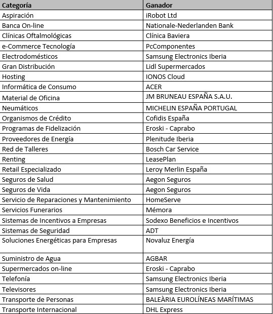 Las compañías galardonadas han obtenido el derecho de uso del logotipo Elegido Servicio de Atención al Cliente del Año 2023 en su comunicación durante un año, lo que los acredita como líderes en este aspecto.