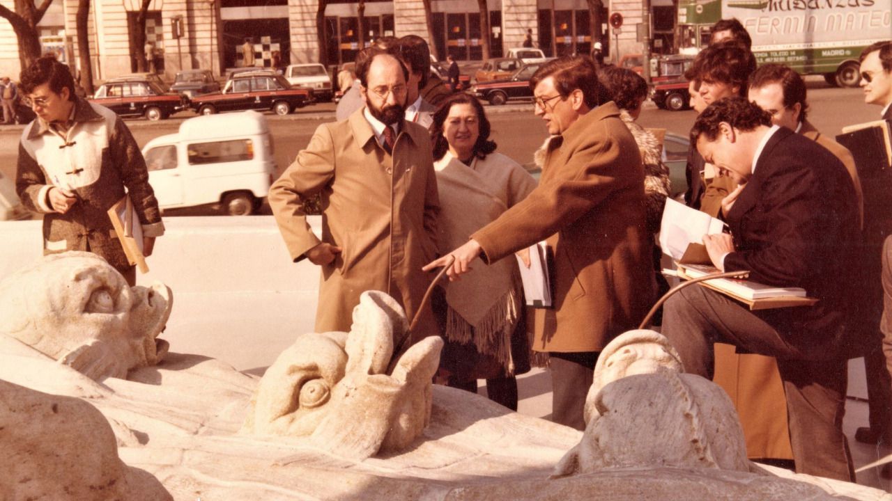 Ahí están sus proyectos de restauración de fuentes como las de Apolo o Neptuno (en la foto muestra el trabajo realizado al entonces concejal de Cultura Enrique Moral, a la directora del Museo Municipal Mercedes Agulló y a los periodistas); sus diseños de placas como las de Alberto Aguilera o los abogados laboralistas de Atocha; sus planos para nuevos monumentos como el que creó para Picasso en Azca, o sus planes para recuperar otros como los de Francisco de Goya, en San Antonio de la Florida, o Pío Baroja, en la cuesta de Moyano, para los que diseñó el pedestal, solo por citar algunos. Joaquín sabía transmitir su ilusión por cada obra realizada. No paraba nunca. Su empuje, su vitalidad, era contagiosa.