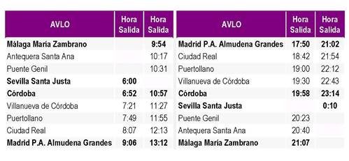 Las salidas desde Andalucía serán a primera hora de la mañana (6:00 horas desde Sevilla y 9:54 horas desde Málaga) y desde Madrid a las 17:50 horas en dirección Málaga y a las 21:02 horas en dirección Sevilla.