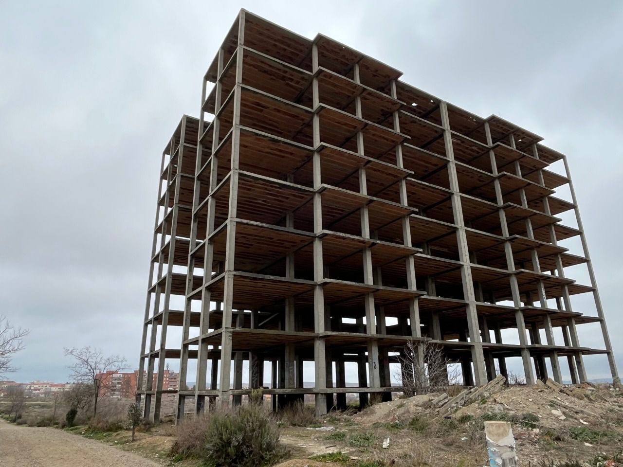 Levantado en 1974 en el camino de Valdinojos por una empresa privada sobre suelo también privado, el edificio iba a haber albergado viviendas, pero la crisis del ladrillo dejó la estructura sin rematar, con las vigas al aire y las plantas abiertas. Abandonado desde entonces, su facilidad de acceso y la falta de medidas de seguridad lo convirtieron en un lugar peligroso para quienes se arriesgaban a acceder para hacer vídeos o fotografías.