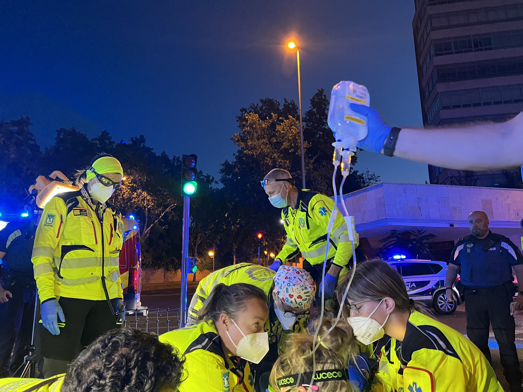 Sanitarios de SAMUR-PC han estabilizado e intubado al motorista, que ha sufrido traumatismo craneoencefálico y fracturas en brazo y pierna, antes de trasladarle en estado grave al Hospital La Paz.