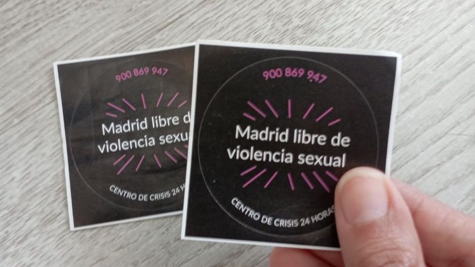 Pegatinas de los puntos violetas en las fiestas de Centro este 2023 (Foto: IU Madrid Centro)