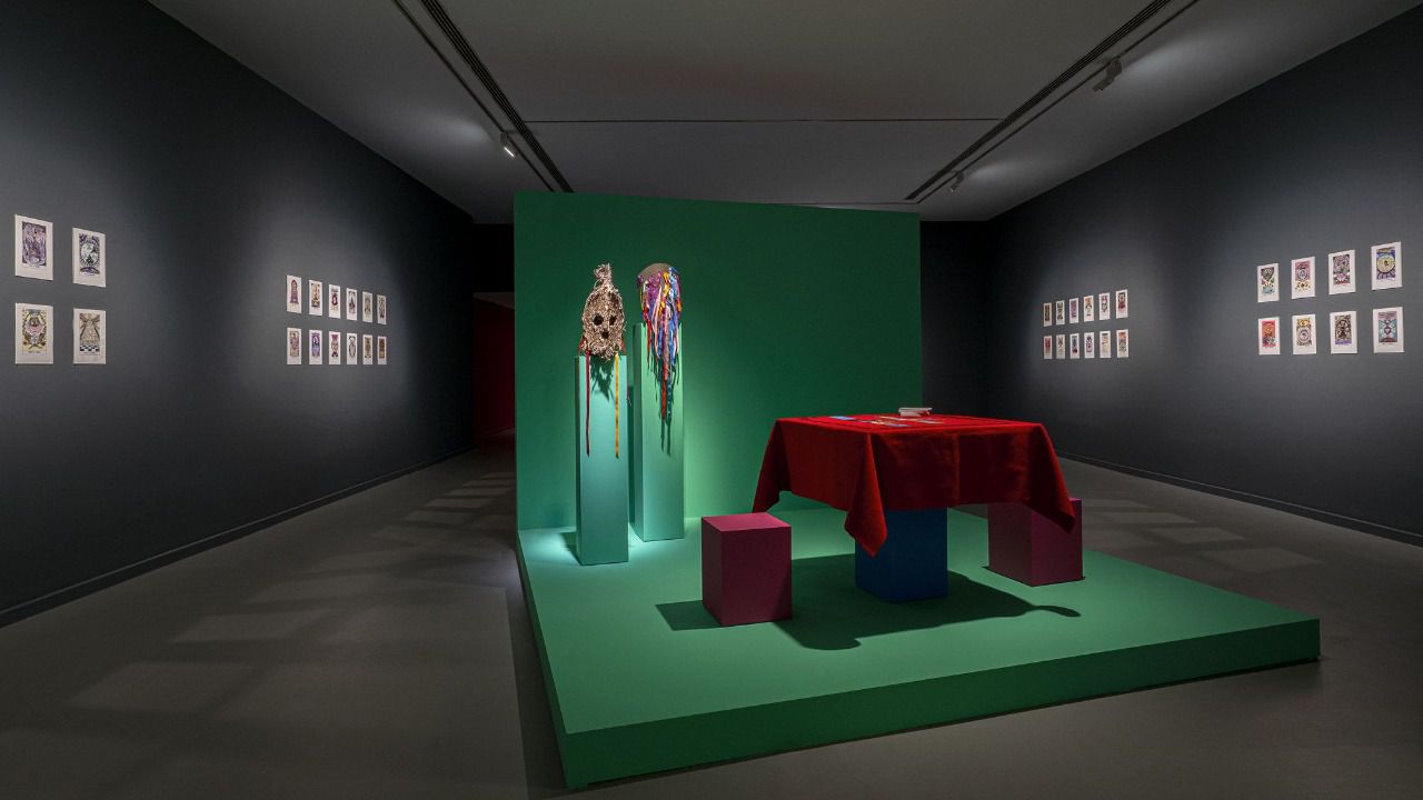 Uno de los protagonistas de la exposición es el mexicano Raúl de Nieves, quien presenta tres esculturas que reflejan su conexión con la rica imaginería de la artesanía mexicana, así como influencias del catolicismo, el tarot, el drag y el punk. En estas obras, al igual que en gran parte de su trabajo, se adentra repetidamente en narrativas sobre transformaciones y viajes simbólicos. Además, la inspiración para sus piezas proviene de la carta ‘El Loco’, que es la carta número cero y representa tanto el inicio como el final del tarot. Este personaje simboliza exploración, libertad y ambigüedad.