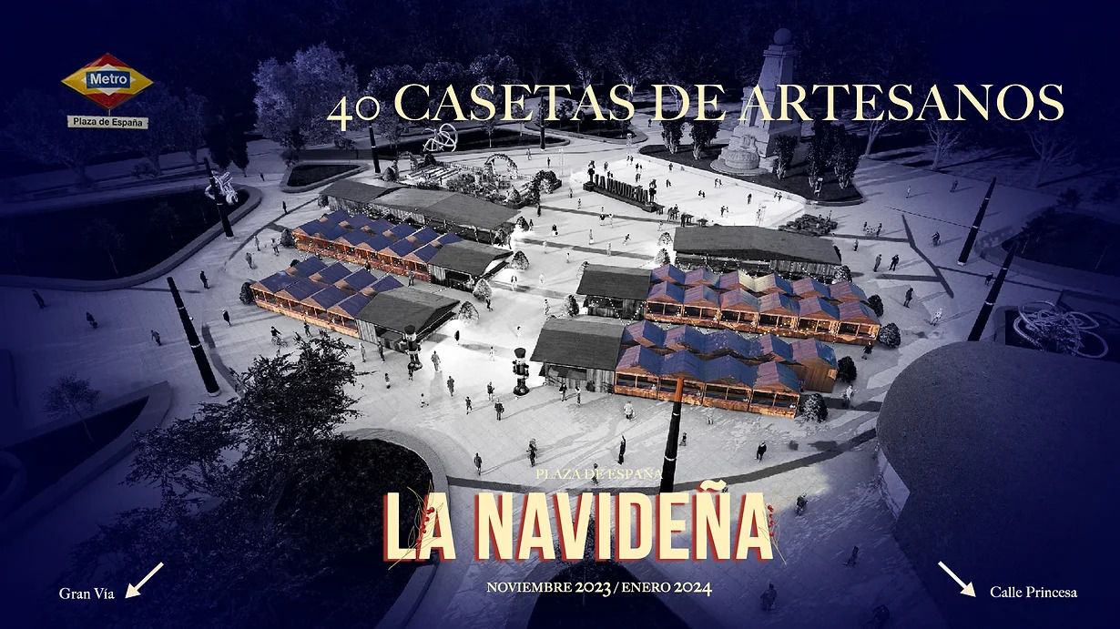 Más de 40 casetas y una pista de hielo de 450 metros cuadrados. Como cada año, Plaza de España ha convertido el centro de Madrid en un auténtico punto de encuentro para disfrutar de sus puestos de artesanía y gastronomía, además de actuaciones experienciales teatrales y circenses que podrán disfrutarse del 23 de noviembre al 6 de enero de 2025. La temática elegida para este curso navideño es la conexión con la naturaleza, por lo que, además del abeto más grande de Madrid, existirá una gran diversidad de elementos naturales.