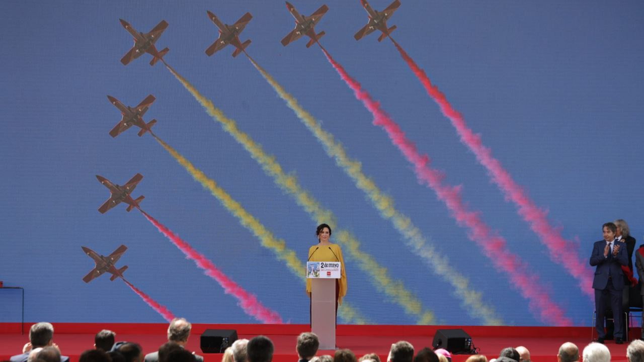 La línea solemne, rota tan solo en contadas ocasiones -las ya citadas declaraciones previas y, a lo sumo, alguna de las actuaciones musicales programadas, como las de la compañía de danza Dani Panullo Co, enmarcada a su vez en la declaración como Bien de Interés Cultural (BIC), en la categoría de 'Patrimonio Inmaterial', de la cultura urbana-, se dejó notar, de hecho, desde los compases iniciales de la jornada. En concreto, desde que Isabel Díaz Ayuso llegó, entre vítores y truenos -las tormentas no distinguen de protocolos- al escenario.