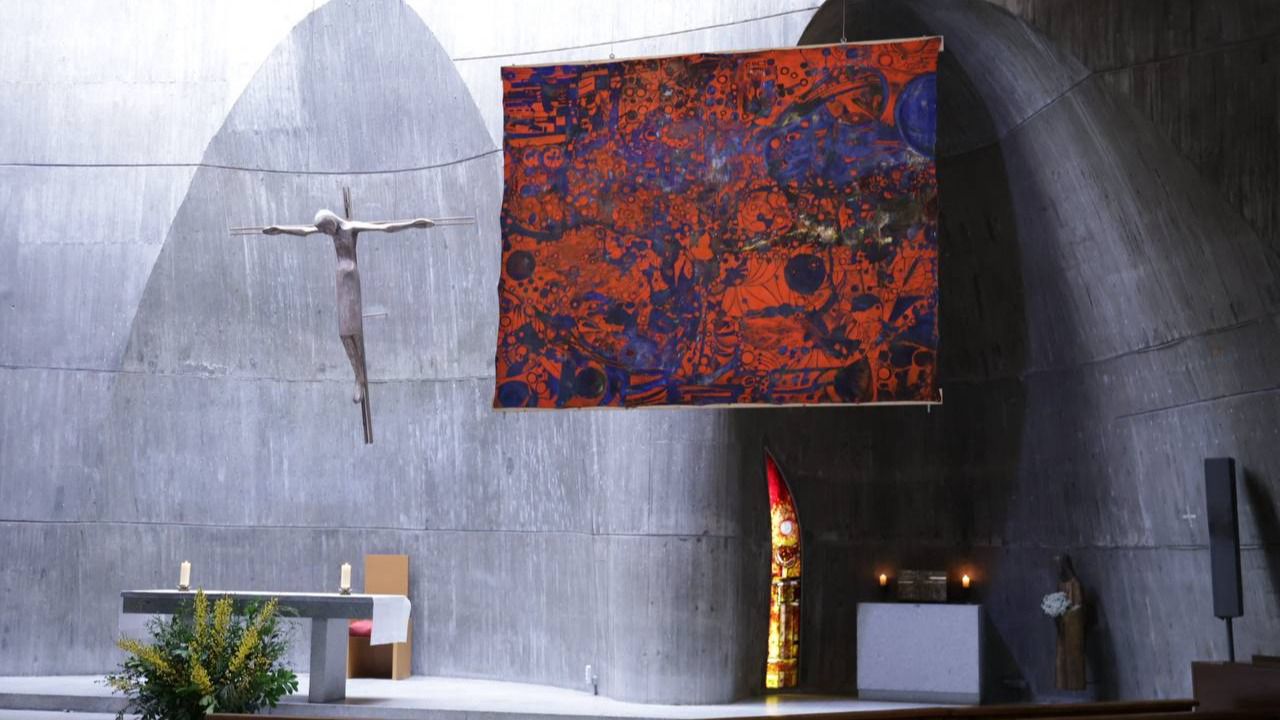 Con este proyecto, inspirado en la figura de Justo Gallego, el creador de la llamada Catedral de Justo en Mejorada del Campo, la iglesia de Fisac se convierte en un laboratorio artístico para este artistas donde confluyen arquitectura moderna, misticismo autodidacta y creación contemporánea.