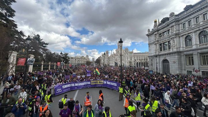 Por otro lado, la segunda marcha, convocada por la Comisión 8M, ha arrancado desde Atocha con el lema 'Feministas Antifascistas. Somos más. En todas partes', defendiendo un enfoque inclusivo de los derechos de todas las personas. La manifestación ha incluido diversas paradas dedicadas al antimilitarismo, el antirracismo y la defensa de los derechos sexuales y reproductivos.