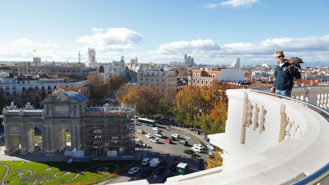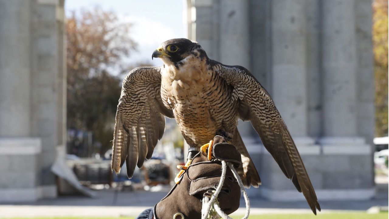 Dos águilas y un halcón volverán a sobrevolar la Puerta de Alcalá a partir del 1 de mayo con el objetivo de ahuyentar a las palomas y proteger el monumento de los daños que provocan sus excrementos.