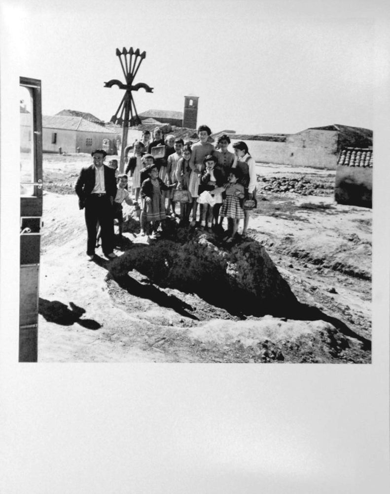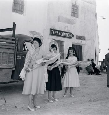 Allí estaba Català-Roca. Y en la improvisada plaza levantada con tablones, traviesas, largueros y tirantes de manera barata, los poderes fácticos del Movimiento y el clero, señoritas bien con mantilla y peineta, y el pueblo llano tratando de colarse en el espectáculo por algún hueco del entramado leñoso. Las calles del pueblo, engalanadas con cordeles de esquina a esquina de los que pendían banderines con las enseñas niponas y nazis. La autoridad competente no había caído en la cuenta de que la firma, el año anterior, de los tres acuerdos ejecutivos del régimen de Franco con los Estados Unidos, junto con el refrendo del concordato con la Santa Sede, dejaban sin sentido aquellos símbolos.