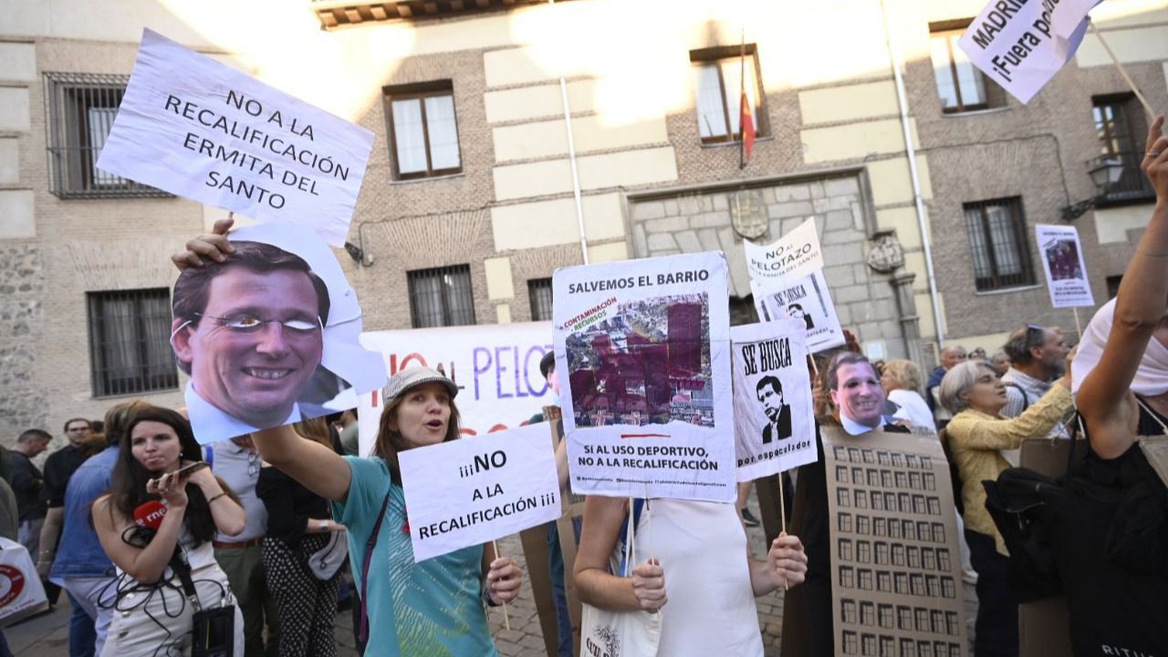 En la plaza de la Villa, además de vecinos con ganas de fiesta, también se han dado cita otros que protestaban por el proyecto de la Ermita del Santo.