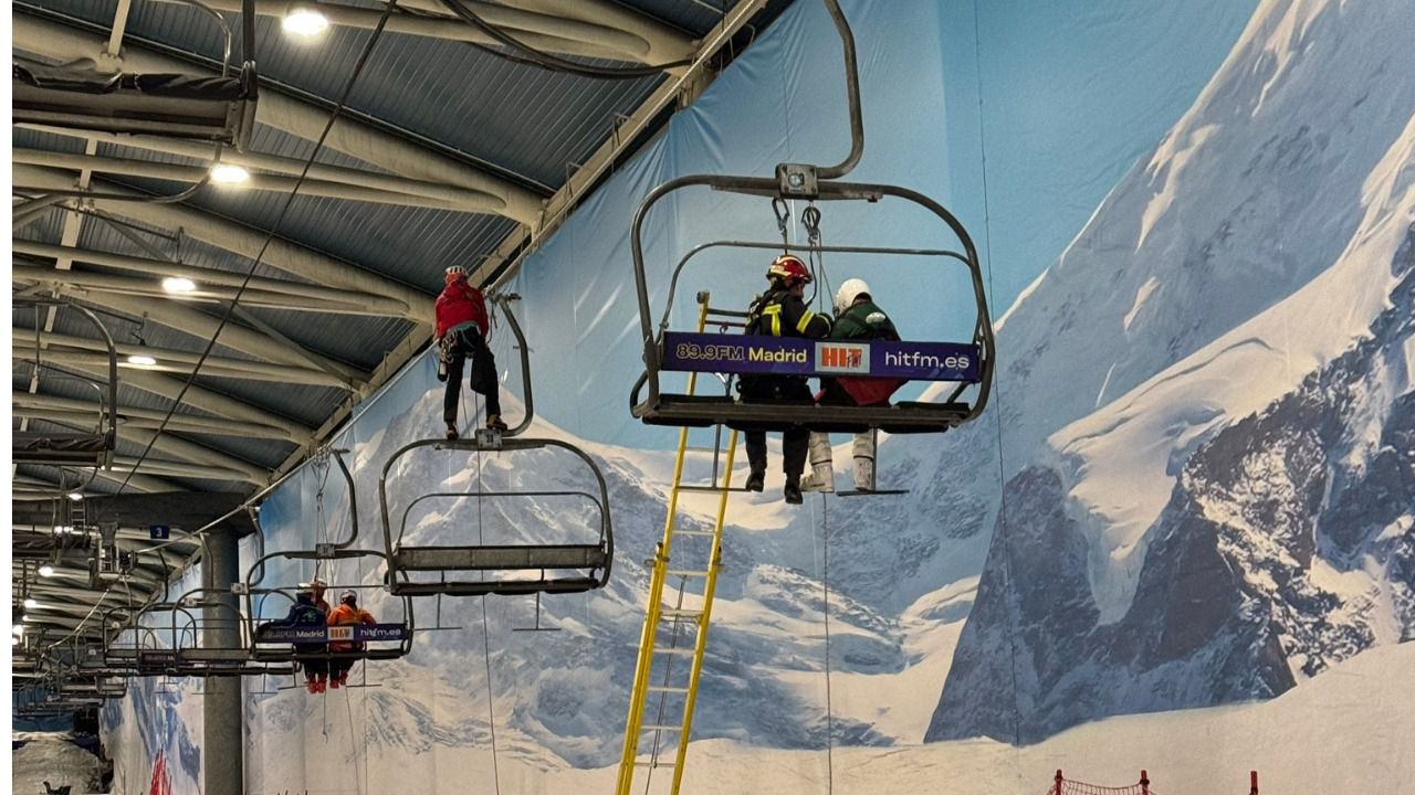 El cuerpo de Bomberos de la Comunidad de Madrid y el Grupo Especial de Rescate en Altura (GERA) han rescatado a unas 40 personas que se quedaron atrapadas en el telesilla mecánico de la estación de esquí de Xanadú, centro comercial de Arroyomolinos.
