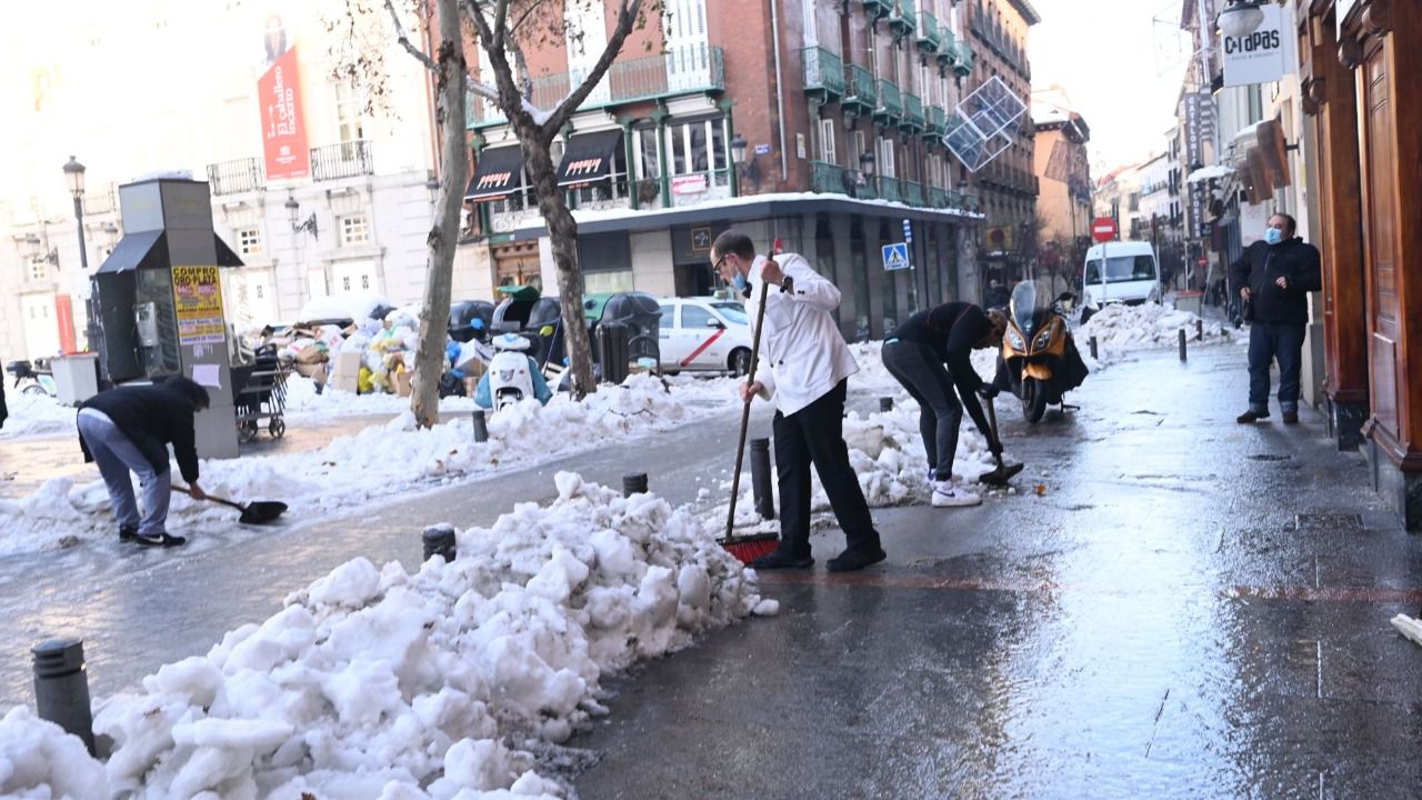 Aunque dejó de nevar hace ya diez días, la borrasca Filomena trajo consigo una bajada muy brusca de las temperaturas mínimas, alcazándose niveles que nada tienen que ver con los que se registran normalmente en esta época del año. En Arganda del Rey, por ejemplo, el pasado fin de semana se registró una temperatura mínima de menos 12 grados bajo cero, lo que ha dificultado todavía más la limpieza de las calles.