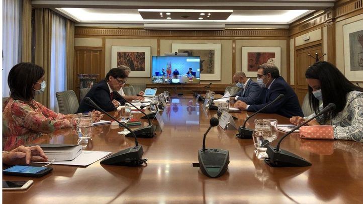El encuentro por vía telemática con los consejeros de Castilla-La Mancha, Jesús Fernández, de la Comunidad de Madrid, Enrique Ruiz Escudero, y de Castilla y León, Verónica Casado, ha tenido lugar al término del Consejo Interterritorial del Sistema Nacional de Salud (CISNS), en la que se ha analizado la vuelta al colegio y los rastreadores militares.
