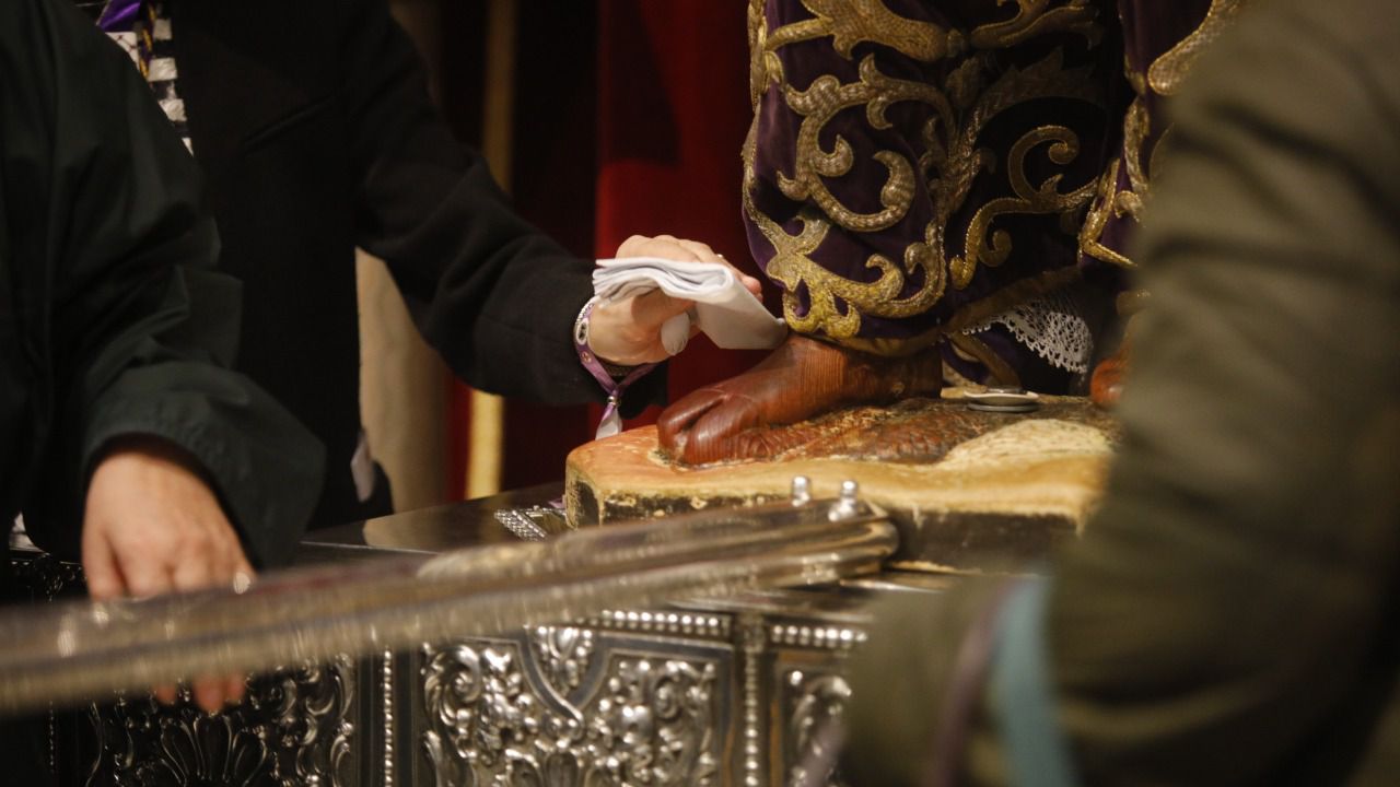 La celebración no está suspendida ,solo el acto de besar los pies a la imagen. La Iglesia Católica ha llamado a los fieles a asistir a los actos de Semana Santa .