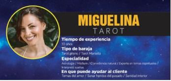 Miguelina es sin duda alguna, una adivina que tiene de todo en su excelente servicio de tarot por teléfono de Cantabria, para ayudarte por ser fiable, certero, bueno, barato y sobre todo que cuenta con muy buenas opiniones por ser responsable con todos sus seguidores. Ella ofrece en su excelente servicio lo siguiente: