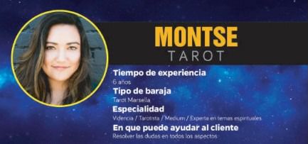 Montse es una reconocida vidente y tarotista de Cantabria, reconocida por ser acertada en predicciones importantes sobre políticos y artistas. Gracias a ello, es reconocida como una de las mejores tarotistas de Cantabria y del mundo entero.