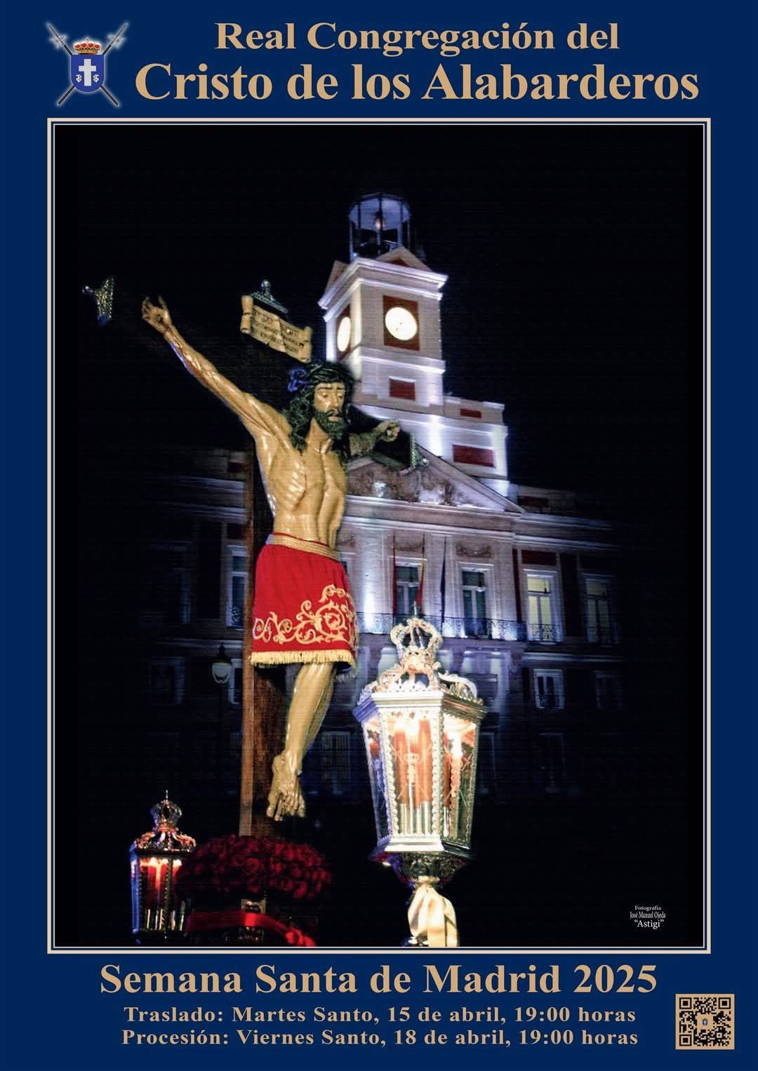 Organizada por la Real Congregación Santísimo Cristo de la Fe, Cristo de los Alabarderos y María Inmaculada, Reina de los Ángeles, la procesión del Santísimo Cristo de los Alabarderos tiene lugar este Viernes Santo. Tiene salida a las 19:00 horas desde la Puerta del Príncipe del Palacio Real de Madrid. Recorrerá las calles del centro histórico, pasará por la Catedral Castrense a las 19:30 horas, donde tendrá lugar la tradicional Estación de Penitencia. Continuando su trayecto, el cortejo procesional pasará por la Plaza de la Villa a las 21:15 horas y llegará a la Puerta del Sol alrededor de las 22:00 horas, en una de las citas más solemnes y singulares de la Semana Santa madrileña.