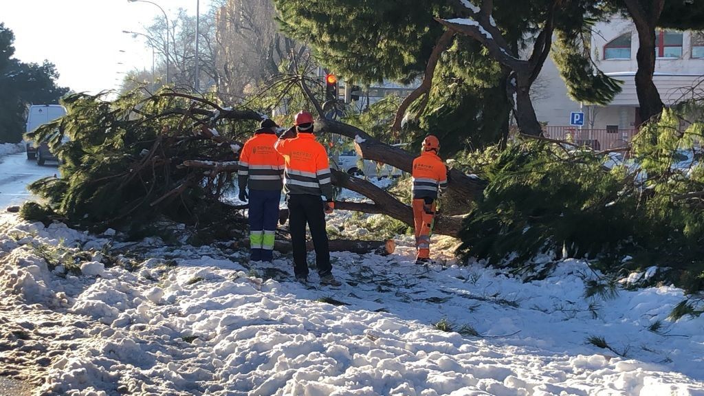 Un árbol maduro tarda entre 15 y 20 años en desarrollarse. Con la fuerte nevada caída en Madrid a principios de enero, han bastado solo dos días para que muchos de estos ejemplares se hayan venido abajo. Precisamente por las consecuencias de la borrasca Filomena, la labor de los trabajadores de Valoriza Medioambiente se ha intensificado de manera especial en el último mes. Estos técnicos llevan años gestionando el arbolado de los parques públicos no singulares y el arbolado viario de Madrid. Forman parte de la Unión Temporal de Empresa (UTE) que componen el Servicio de Evaluación y Revisión de Zonas Verdes de Madrid (Server) y desde hace dos años y medio, su función se centra en la revisión del arbolado de riesgo.